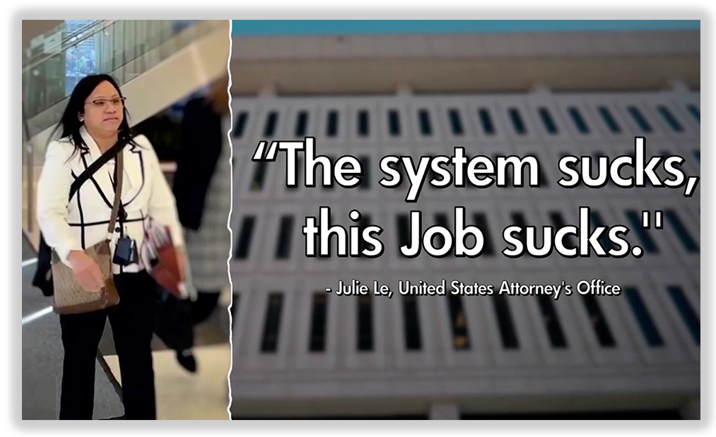It’s not surprising. As (now former) AUSA Julie Le told a Minnesota district judge in open court, “The system sucks. This job sucks. I wish you could hold me in contempt so that I could get 24 hours of sleep.” Le had been assigned 88 cases in less than a month, according to an NBC News review of federal court records.